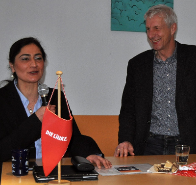 Auf dem Bürgerempfang des KV Die Linke. am Samstag, den 20.Februar 2016 nahm Behiye Uca für die Fraktion Die Linke/BSG zu aktuellen kommunalpolitischen Fragen Stellung. (Foto: Behiye Uca mit dem Bundestagsabgeordneten Herbert Behrens.) Hier ihre Rede: