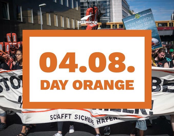 Die Teilnehmenden werden gebeten, mit orangener Kleidung ihre Solidarität mit den Geflüchteten und der Seenotrettung zu zeigen.