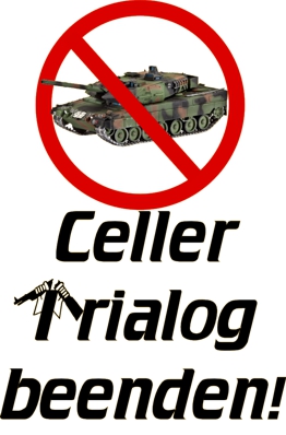 Für lesefaule (und/oder diskussionsfreudige) Menschen bietet das Bündnis gegen den Celler Trialog am kommenden Montag, den 25. August, 19 Uhr, im Bunten Haus eine kleine Einführung Gegenwart Und Geschichte dieses Treffens der nationalen Rüstungslobbyisten - und auch die eine oder andere Antwort darauf, warum er besser keine Zukunft haben sollte. Also: "Was Sie schon imemr wissen wollten, aber nicht zu fragen trauten." Oder andersherum gefragt: Was treiben die da eigentlich und warum sollte uns das missfallen?