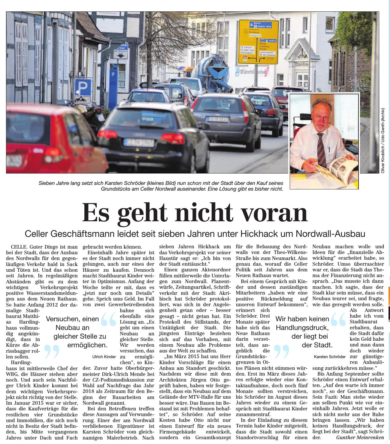 20161105 CZ Es geht nicht voran / Celler Geschäftsmann leidet seit sieben jahren unter Hick-Hack um Nordwall-Ausbau